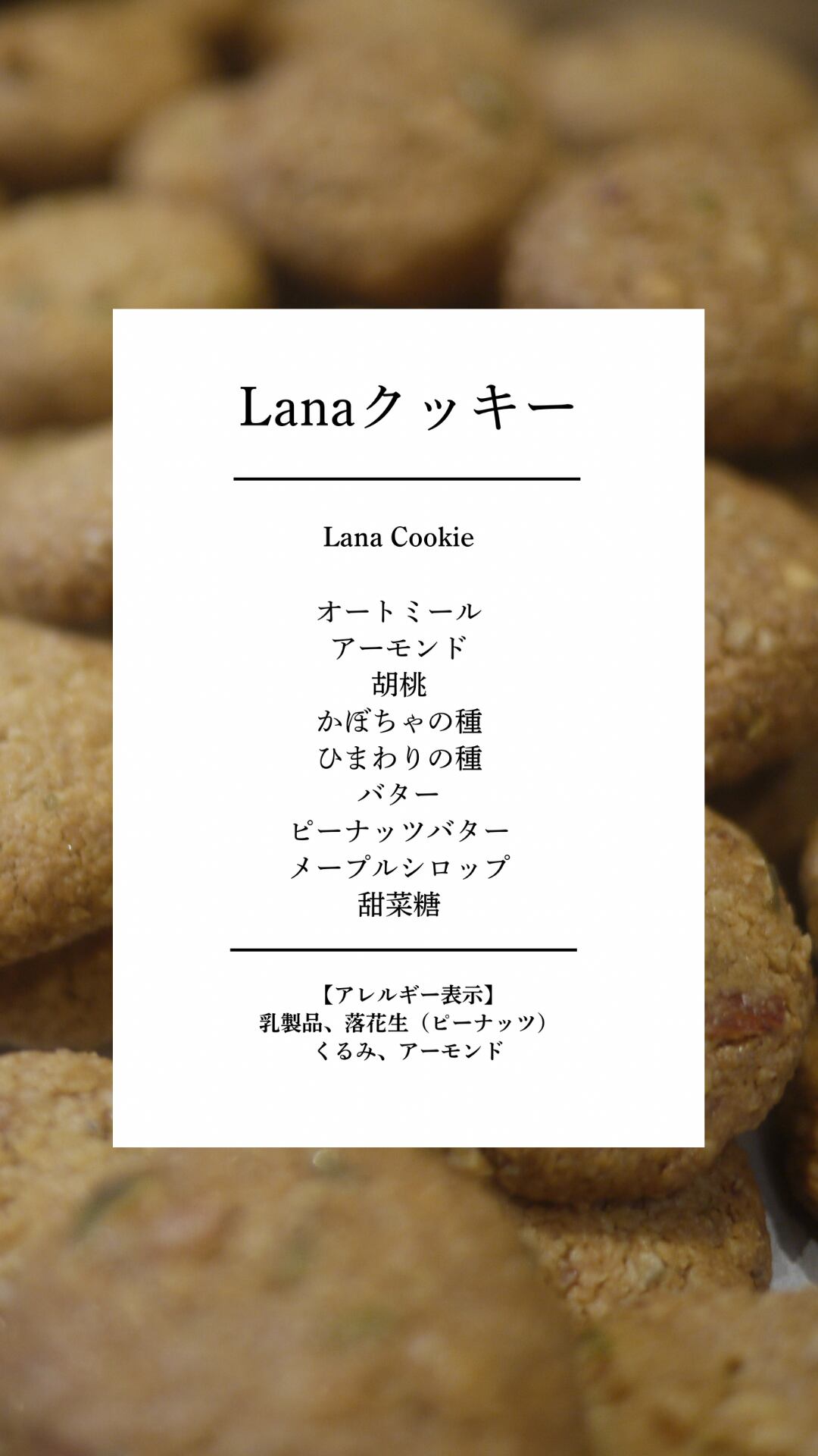【原材料】オーツ麦、ひまわりの種、かぼちゃの種、胡桃、アーモンド、バター、メープルシロップ、ピーナッツバター、甜菜糖